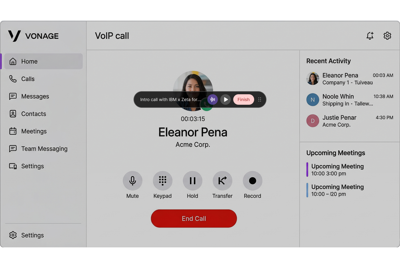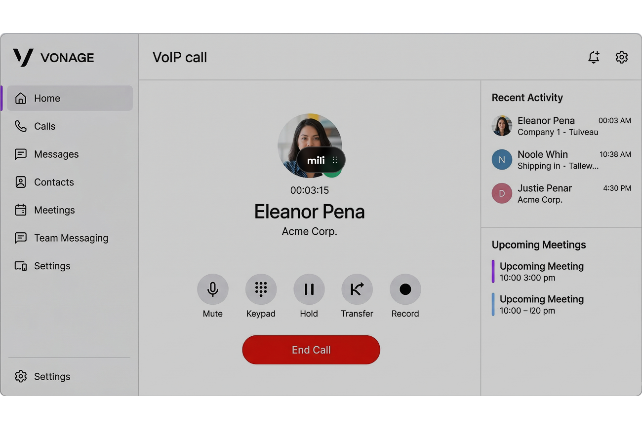 Nothing changes on Mili's end. Because Mili listens through your device — not through Vonage's system it works the same way whether you're on Vonage, RingCentral, Five9, Dialpad, 8x8, or Google Voice. If you switch platforms tomorrow, Mili still works exactly the same.